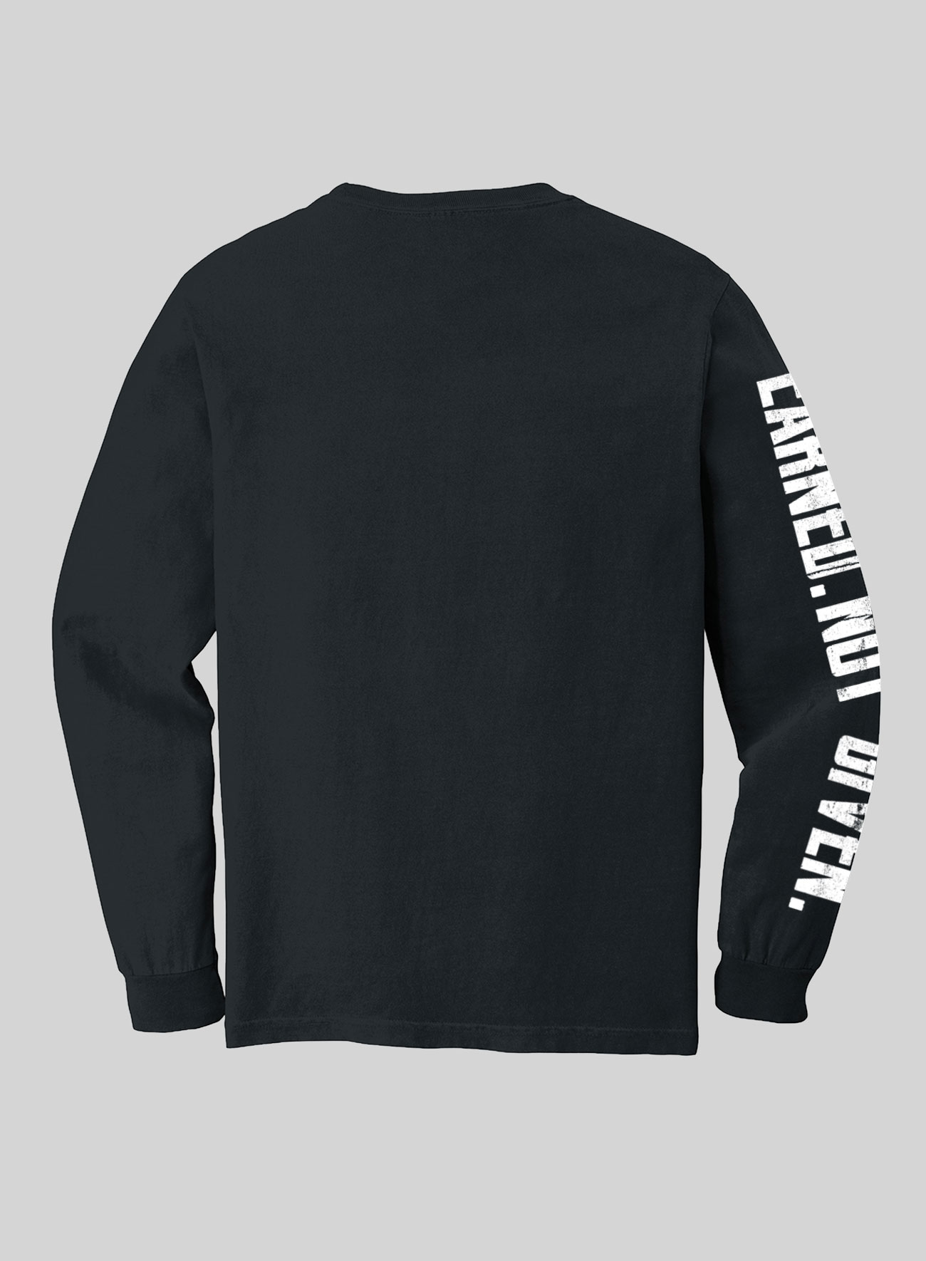 The Earned. Not Given. long sleeve heavy-weight t-shirt keeps it simple and says exactly what it means. Our logo hits the chest clean and proud, while our motto runs bold down the right arm — Earned. Not Given. — so there’s no mistaking what you stand for.