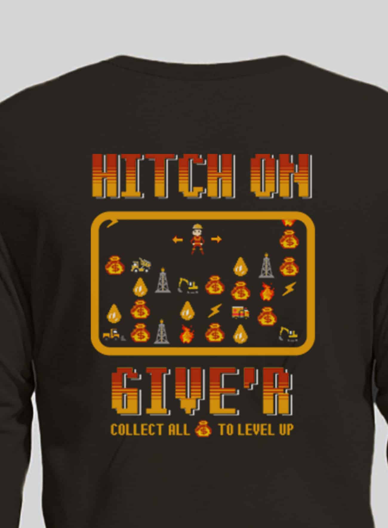 Our Hitch On mid-weight crewneck takes its inspo straight from classic 80s arcade cabinets—bold pixels, simple rules, and high-stakes fun—reimagined for the construction and oilfield world.