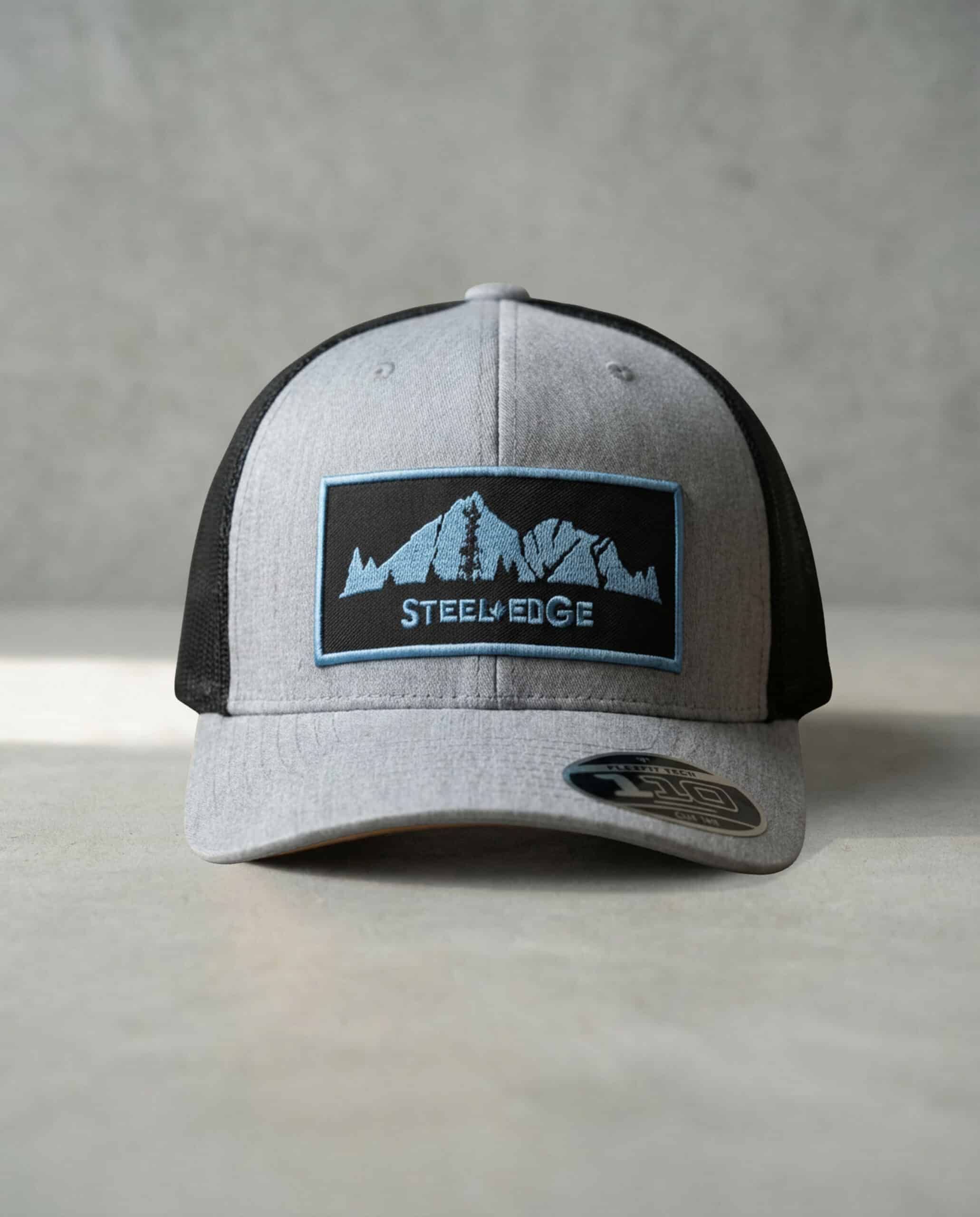 Top your look with the “Rocky Riggin’” hat—where the Rockies meet the rig floor. A mountain range frames a classic oil rig silhouette at the centre, with the Steel Edge logo stitched along the bottom edge.